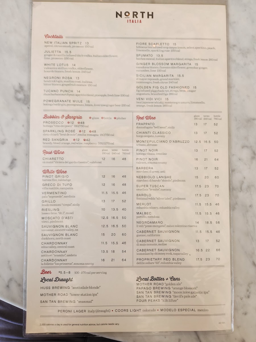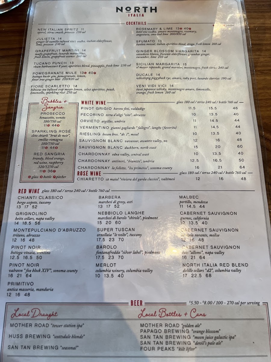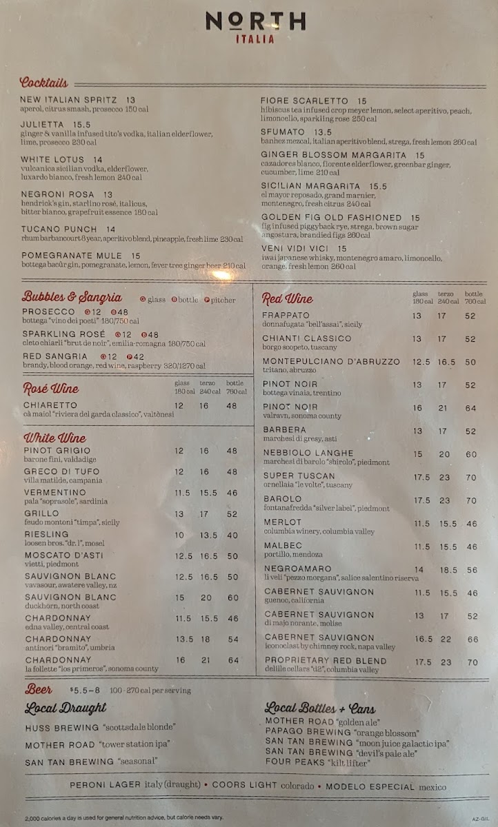 If you're craving authentic Italian flavors, the North Italia Menu at 1950 E Williams Field Rd #102 in Gilbert, AZ, is the place to be. The menu offers a delightful range of freshly made dishes, from pasta and pizza to seasonal specialties. Whether you’re in the mood for a classic spaghetti Bolognese or something with a little more flair like their signature pesto ravioli, there's something for everyone. The wood-fired pizzas are a standout, with a crispy crust and fresh toppings that make each bite a little piece of heaven. Pair your meal with a glass of wine from their thoughtfully curated list, or indulge in a sweet treat to finish. It's the perfect spot for a casual meal with friends or a family gathering, where every dish feels both comforting and exciting.